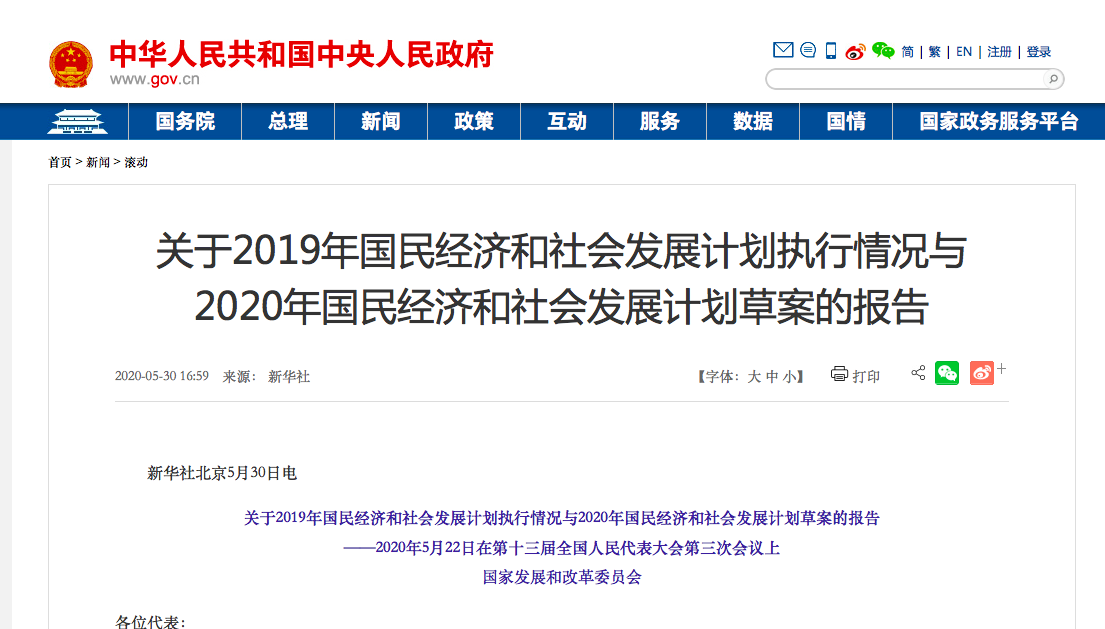 近日,由国家发改委受国务院委托所做,新华社受权发布了《关于2019年国民经济和社会发展计划执行情况与2020年国民经济和社会发展计划草案的报告》(简称《报告》),关系到整个国民经济和社会发展。