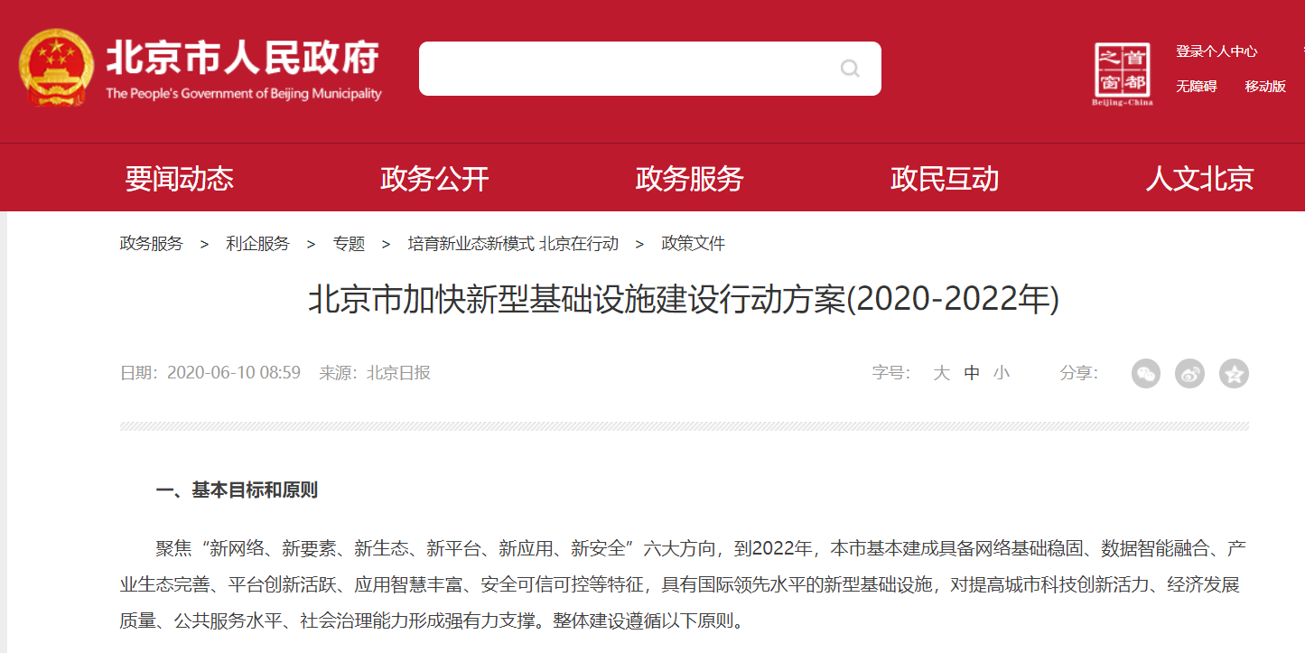 近日,北京发布《北京市加快新型基础设施建设行动方案(2020-2022年)》(以下简称《方案》),明确北京建设新基建的基本目标、原则、基本任务及保障措施,实施期为三年。这意味着北京新基建将开始提速,向各行业纵深发展。