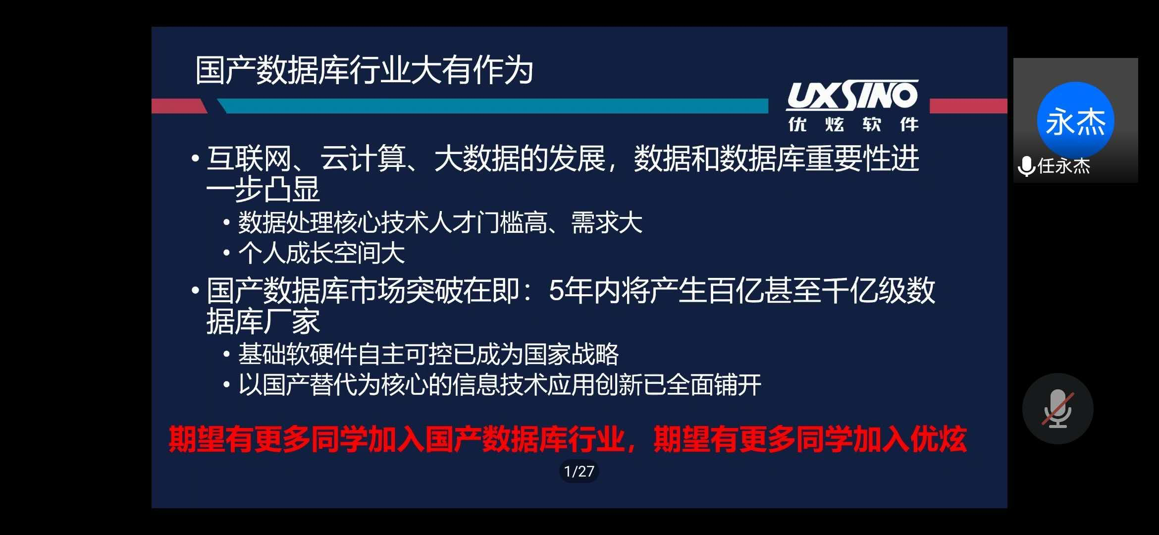 数据已成为当代社会发展的关键生产要素,从产品生命周期与产业发展来看,数据库事业值得终生投入,国产数据库发展更是任重道远,我们需要像优炫软件一样坚守“自主创新”的国产基础软件厂商,更需要有志向、有目标、有理想的数据库有志之士加入。优炫软件致力于数据库关键技术研究与应用,建设高可用、安全与智能化的数据库产品与生态。与此同时,不断引进数据库行业科学家,积极加入多个标准化组织、产业联盟和开源社区,参与数据库标准的制定及国产数据库预研项目,与生态合作伙伴共同推动数据库产业良性发展。如今,数据库产品已成功应用于政府、金融、军工、能源、统计、医疗、教育等关系国计民生的重要领域,为我国信息技术应用创新提供了有力支撑。