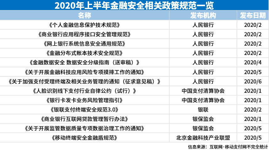 据不完全统计,仅2020年上半年,金融领域陆陆续续有13项政策、规范面世。这些政策或多或少都与金融数据安全、信息安全相关。目前来看,监管层政策、规范大都着眼于数据安全,可见,数据安全已然成为所有金融组织在当下必须直面的挑战。