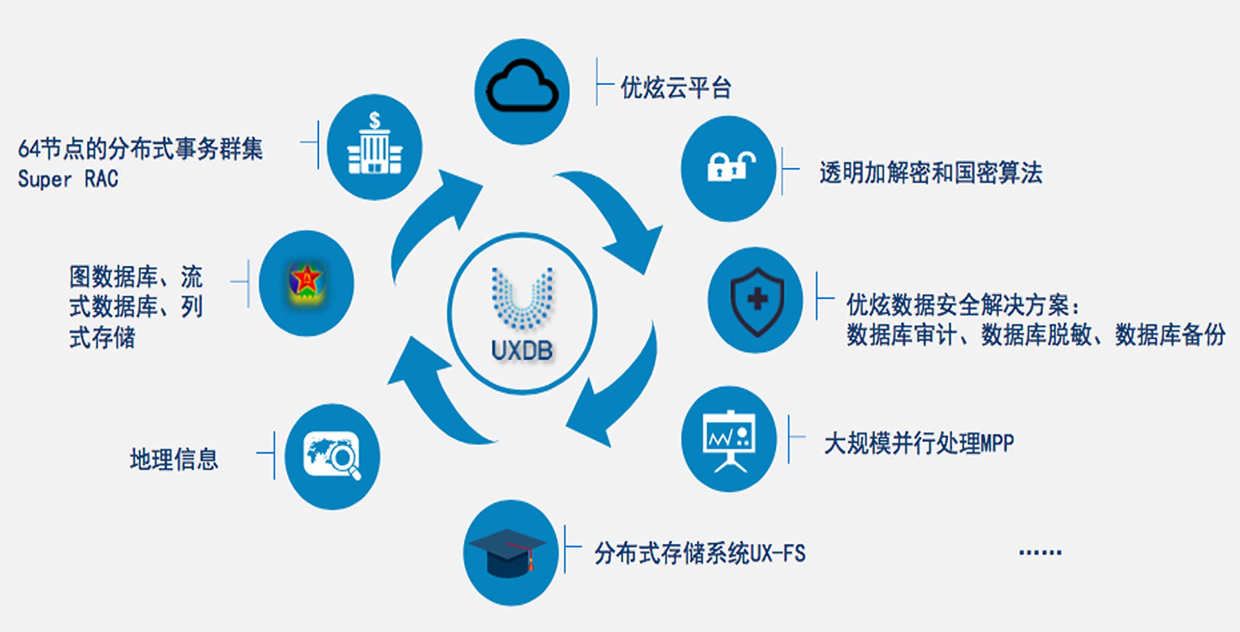 经过多年数据库基础技术研究、产品体系建设、生态建设与行业推广,优炫数据库已建立拥有四大研发中心,十余位行业科学家,建立了扎根全国30余个分支机构的技术服务队伍。在国家推荐的产品名录中,优炫数据库已成功入选中央政府采购网、央企采购名单及多个重要领域的目录,成为国内成熟、极具优势的数据库品牌,在政务、金融、军工、能源、医疗等重要行业得到广泛应用。
