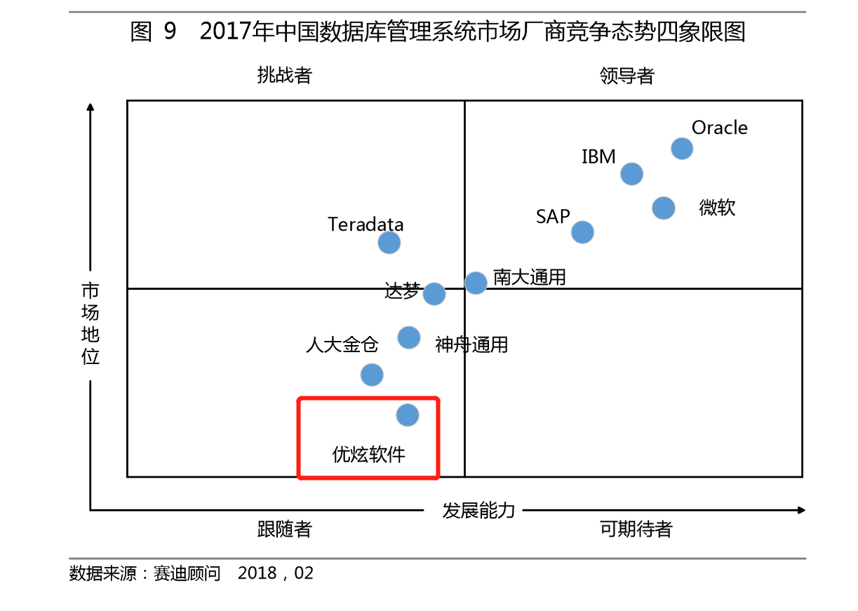 ▲2017至2019年间中国数据库管理系统市场厂商竞争态势四象限图