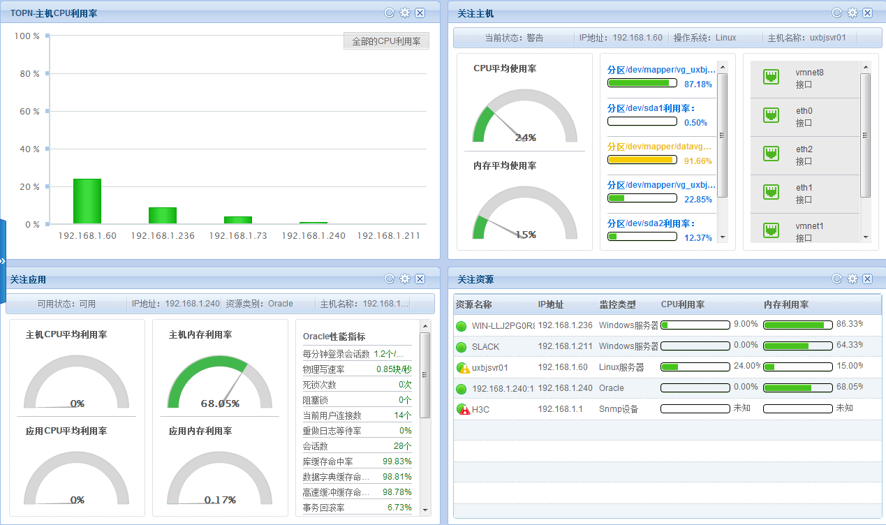 全面监控基础架构:网络设备、主机、存储、数据库、中间件和应用、链路等;