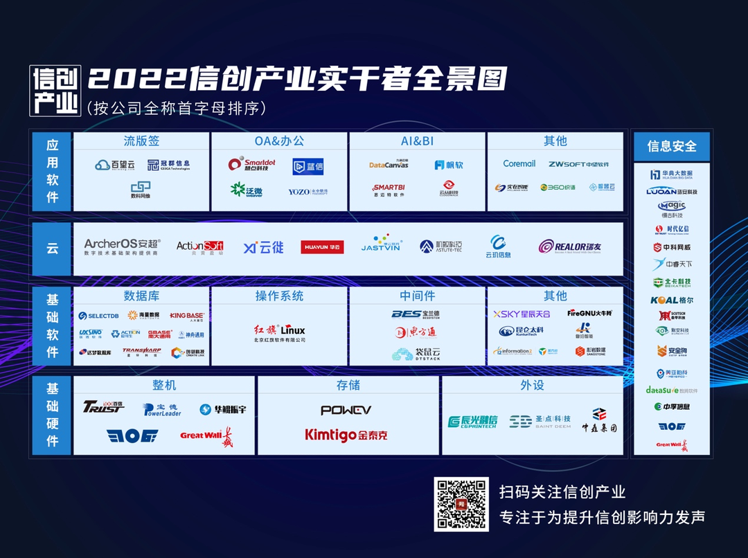 本次盘点由“信创产业”专业顾问和行业安全专家组成的专业评审团队,历经月余,对应用软件、云、基础硬件、基础软件、信息安全等产业链各环节的一批实干企业进行全面的年终盘点,最终综合评审选出“2022信创产业实干者年度盘点实干企业”。