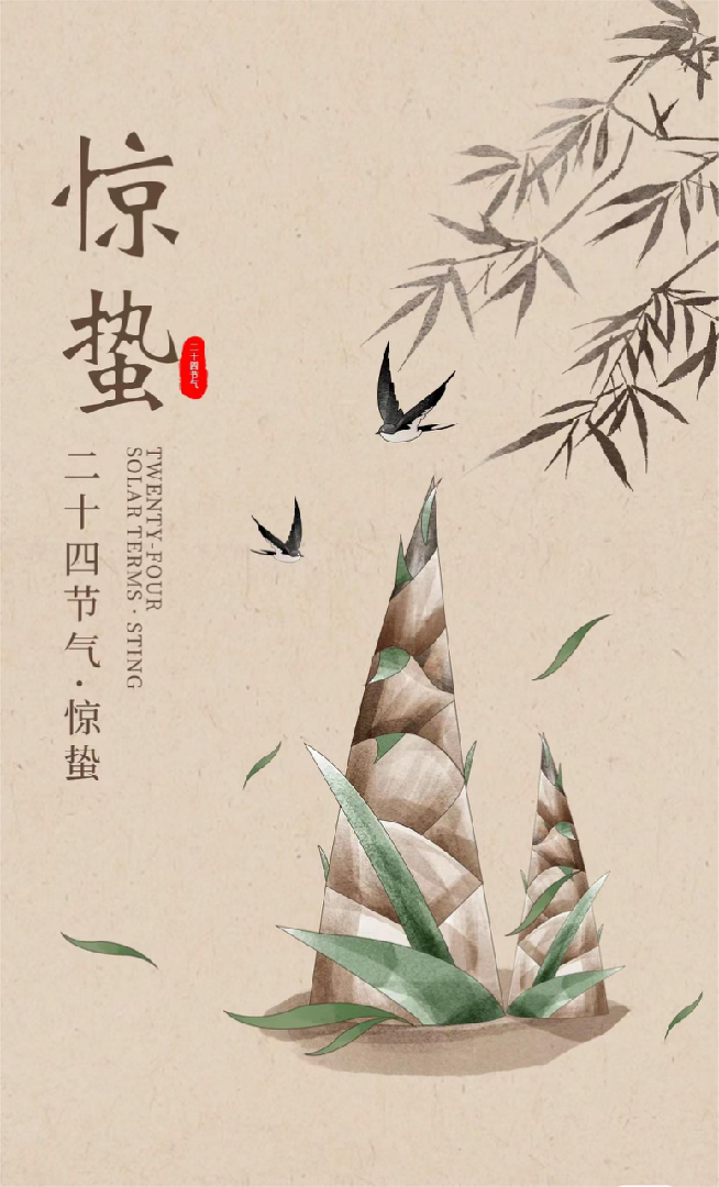 惊蛰,是二十四节气中的第三个节气。斗指丁,太阳到达黄经345°,于公历3月5-6日交节。惊蛰反映着自然界生物受节律变化影响而萌发、生长的状态。时至惊蛰,阳气上升、气温回暖、春雷乍动、雨水增多,万物生机盎然。农耕生产与大自然的节律息息相关,惊蛰节气在农耕上有着相当重要的意义,它是古代农耕文化对于自然节令的反映。