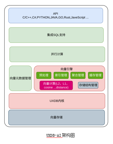 集成SQL支持:与标准UXDB兼容,UXDB-AI数据库的用户可以使用SQL来创建、查询和管理向量表,支持混合查询。这种集成化设计简化了开发流程,降低了学习成本。